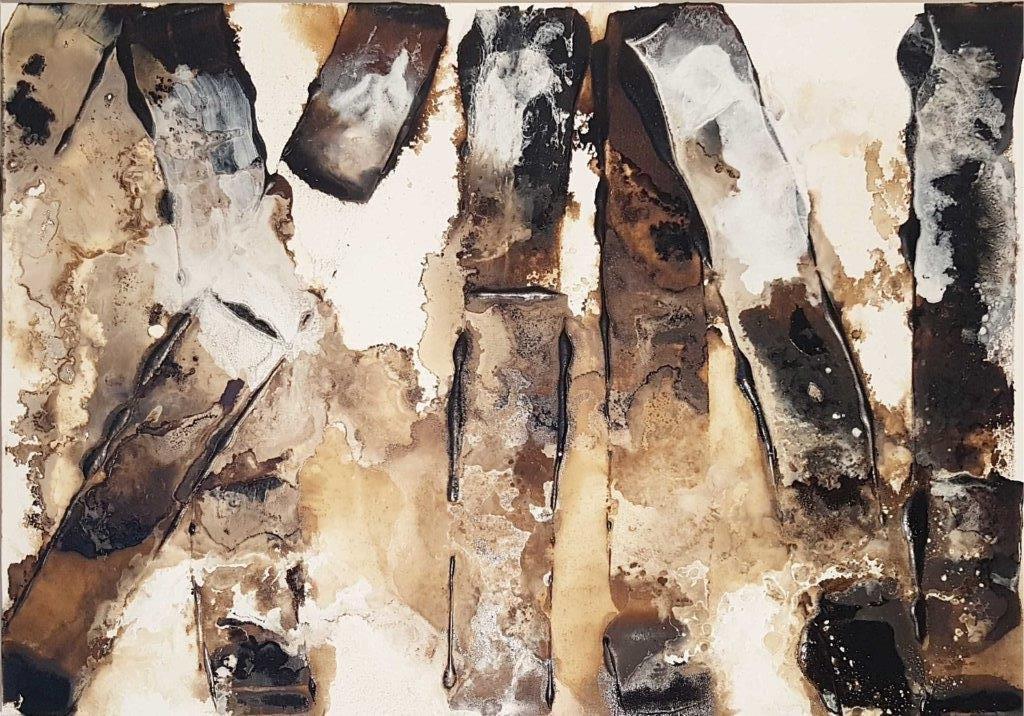 Die ausgestellten Arbeiten von Karin Pohl, die in der Vergangenheit bereits regelmäßig bei der WOGA (Wuppertaler offene Galerien und Ateliers) und unter anderem an der Colorfield Performance 2018, einem Projekt mit 500 weiteren Künstlern aus ganz Europa anlässlich der Aktivitäten zur „Kulturhauptstadt Europa 2018/Leeuwaarden, teilgenommen hat, spiegeln ihre Gefühle und momentane Erlebniswelt auf der Leinwand wider. Ganz „im Bild“ und nicht „im Denken“ verleiht sie in ihren Werken ihren inneren Prozessen Ausdruck. Bei ihren großformatigen Arbeiten in Mischtechnik verwendet die Künstlerin etwa Acryl mit Sand, Künstlerspachtel und Labsal, einen natürlichen Werkstoff, beispielsweise bestehend aus Kiefernholzteer, chinesischem Holzöl und Leinölfirnis.